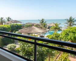 Offrant une vue imprenable sur l’océan, le jardin et la piscine, cette chambre spacieuse et lumineuse est idéale pour un séjour alliant détente et élégance.Grâce à sa baie vitrée panoramique, profitez d’une lumière naturelle apaisante et d’un cadre idyllique pour un séjour inoubliable. Réservez dès maintenant !